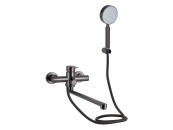 Змішувач Настінний графіт для ванни Pure 005 (k35) з довгим поворотним виливом та душовим гарнітуром BRIPUR005GRP ТМ Brinex