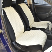 Накидки сидінь "Алькантара" "DEKOR" Чорна - Синя нитка стьобані ромби на флісі (1+1) Передні