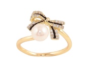 Каблучка Позолота 14K Бант з кристалами, чорною емаллю та перлиною 11199 р.16-17 ТМ XUPING