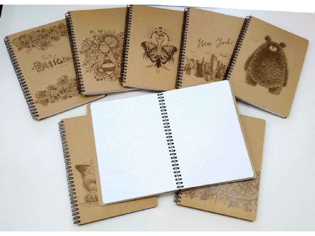 Блокнот використовують для записів та замальовок на вулиці чи в дорозі. Формат 17х24 см зручний, блокнот легко помістити в рюкзак, сумку чи кишеню куртки. Обкладинка з картону захищає аркуші від можливої деформації. Аркуші між собою скріплені боковою спіраллю, що зручно при перегортанні. Для зручного письма або малювання у блокнота є товста картонна підложка. Внутрішні листи в клітинку, 120 арк. Внутрішній блок - офсетний папір, щільність 60 гр./м2 . Обкладинка КРАФТ картону коричневого кольору товщиною 1 мм.