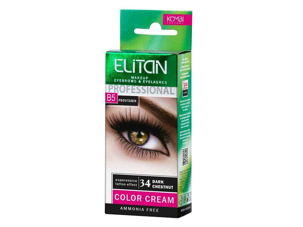 Професійна крем-фарба для брів і вій без аміаку «Елітан» №34, колір Темний каштан.