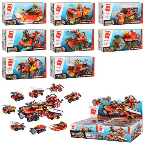 Конструктор Qman 1410 (96шт) пожарная техника, от57дет, 8шт(8видов) в дисплее, 43-10-20см