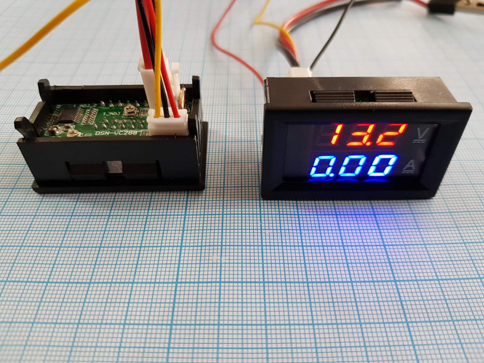 Вольтметр+Амперметр 12/24V Червоний+Синій диспл. врізний на клямці (MAXI) DC10A 4-30V