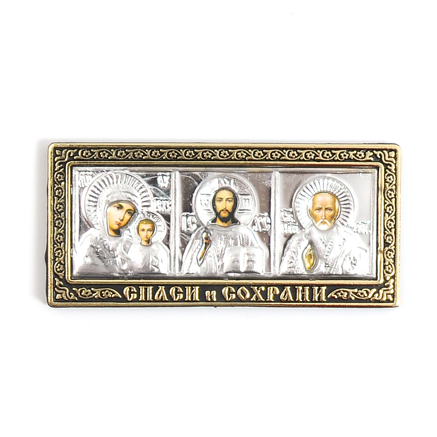 Ікона Трійця на скотчі великий об'ємний 3D срібло напис "Спаси та Збережи"