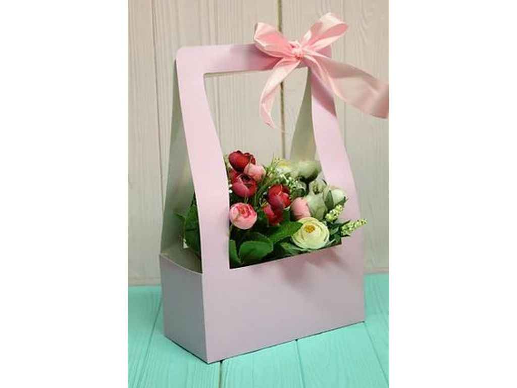 Коробка для квітів Hand bag 10*20*32см. кол. Бузкова пудра ТМУПАКОВКИН