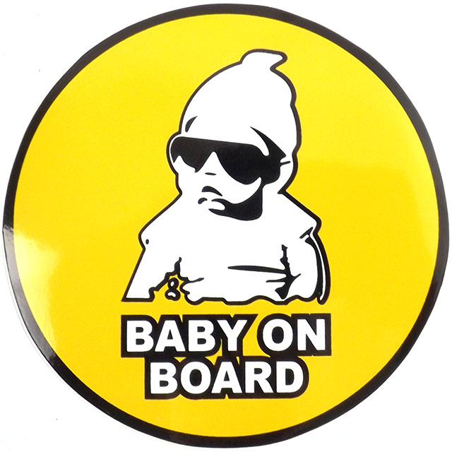 Наліпка Попереджувальна "Дитина в авто" "Baby on board" жовтий фон 12см