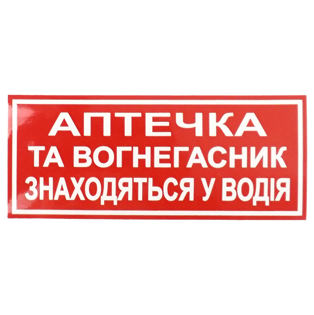 Наліпка "Аптечка та вогнегасник знаходяться у водія"(135мм*60мм) (уп.10шт)