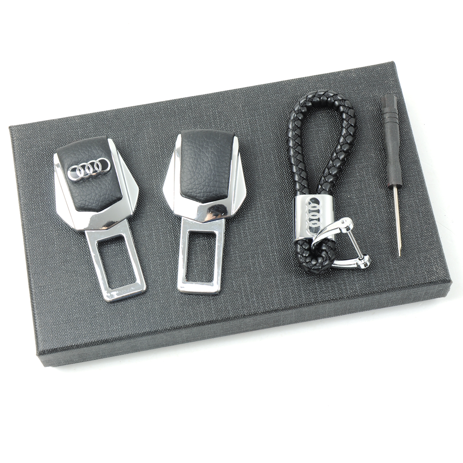 Подарунковий набір AUDI 2в1 (фіксатор ременів, плетений брелок) №2 хром