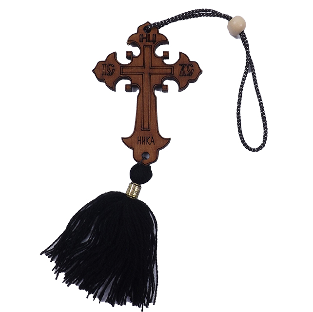 Хрест дерев'яний на дзеркало заднього виду на нитці малий округлий (8х5,5см)