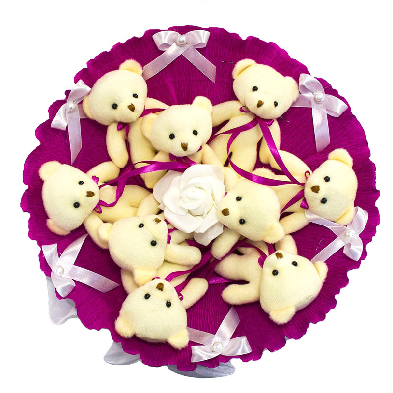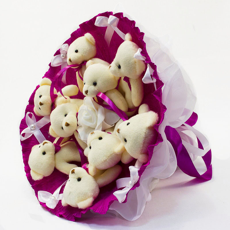 Букет з іграшок Ведмедики фуксія 5351IT з 9ю іграшками
