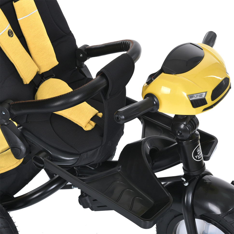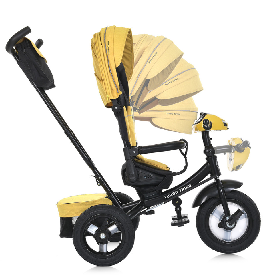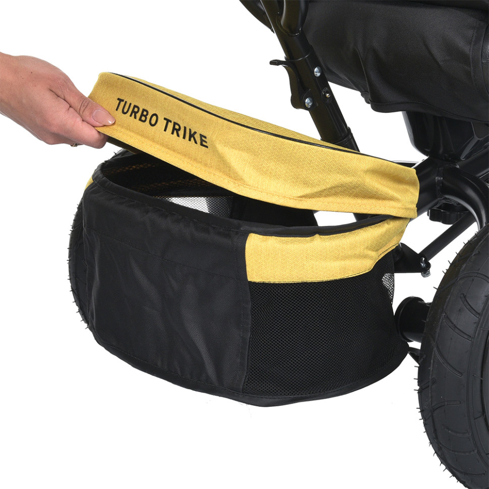 Бренд TURBO TRIKEКатегорія дитячі триколісні велосипедиСтати універсальнимРекомендований вік від 1,5 до 3 роківТип колясочнийРекомендоване навантаження до 25 кгМатеріал рами стальКермо швидкознімне, складане, 2 положення (вгору-вниз)Ігрова панель світло/музика USB/МР3/BTживлення: 3*AA, пульт;Захист 3-х точкових ременів безпеки з м'якими накладками зі світловідбивними смугами.бампер розсувний з м'якою накладкою, екошкіраремінь-захист від сповзанняСидіння поворотне 360 °;регулюється (ближче-далі від керма), 3 положення;екстра-м'який чохолширина: 28 см; глибина: 20 см.висота від сидіння до підлоги: 38 смвисота від сидіння до нижньої підніжки: 22 смспинка висока спинка 50 см;3 положення; знімно;Капюшон глибокий капюшон з козирком (зі світловідбиваючою смугою)глибина регулюється за допомогою додаткової тканинної вставки на блискавці,з'ємнийоглядове вікно (сітка)Тканина нова, UV 50+/WPF захист від вигорянняБатьківська ручка подвійна посилена2 положення, висота від підлоги: min 94 см/max 101 см,м'які фомові накладкишвидкознімнаПідніжка 2 види: знімна та складається;з антиковзною поверхнеюКолеса надувні (гумові) 12/10;на підшипниках (передні та задні колеса)Ø передніх коліс: 32 смØ задніх коліс: 27 смширина шасі задніх коліс: 53 смобода: алюм+пластик;пластиковий захист (переднє колесо);фіксатор вільного ходу педалей;Гальма: ножні, 2 шт.Багажний кошик тканинний, з кришкою та жорстким дном; знімноДодаткова сумка із блискавкою, пульт.