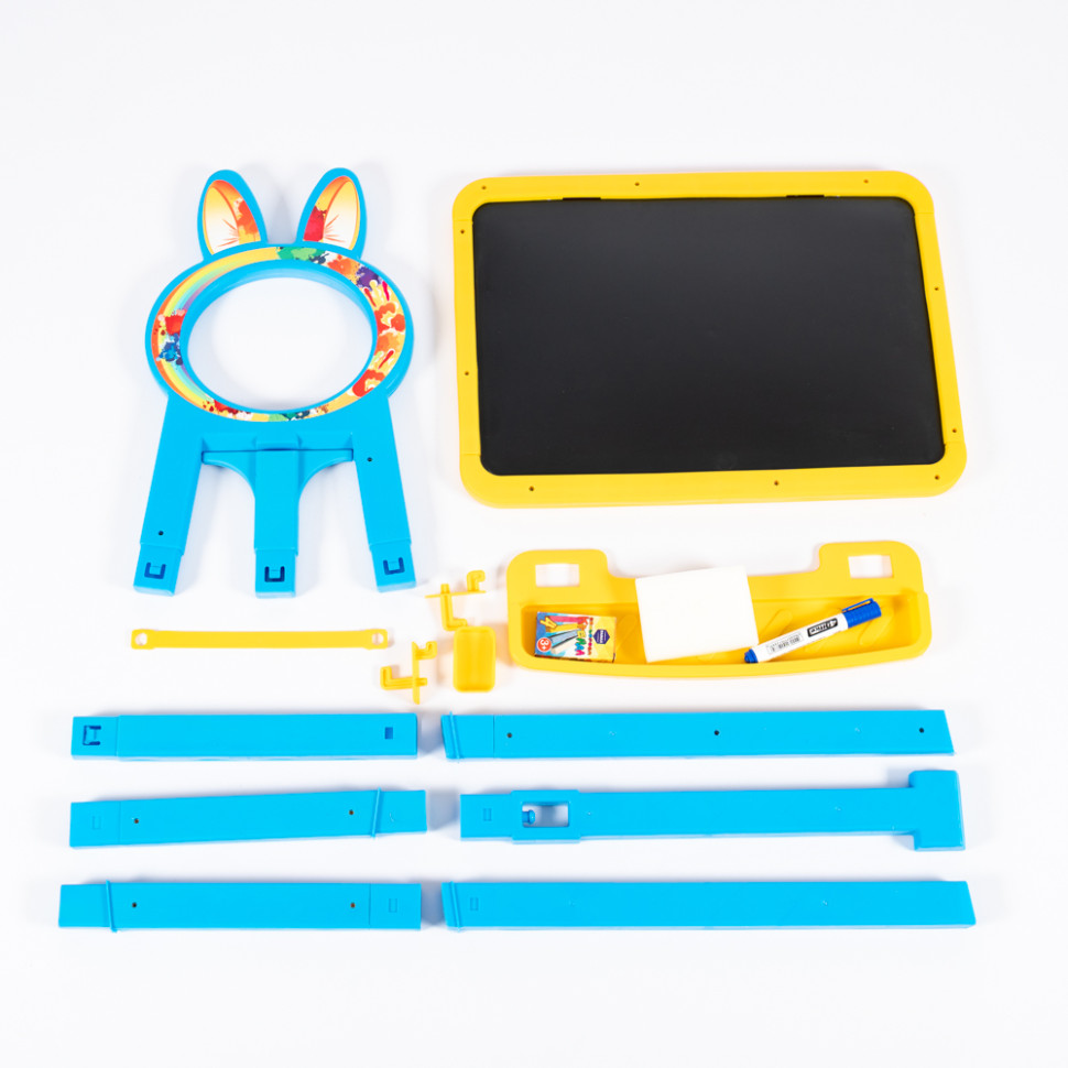 Дитячий мольберт 2 в 1 підлоговий, розбірний, універсальний. У комплект входить: двостороння дошка для малювання (1 сторона - біла для малювання маркером; 2 сторона - чорна для малювання крейдою), крейда, маркер, мочалка. Висота мольберта - 110-130 см. Розмір дошки: 47х40 см. Розмір упаковки: 49,5х37,5х7,5 см.