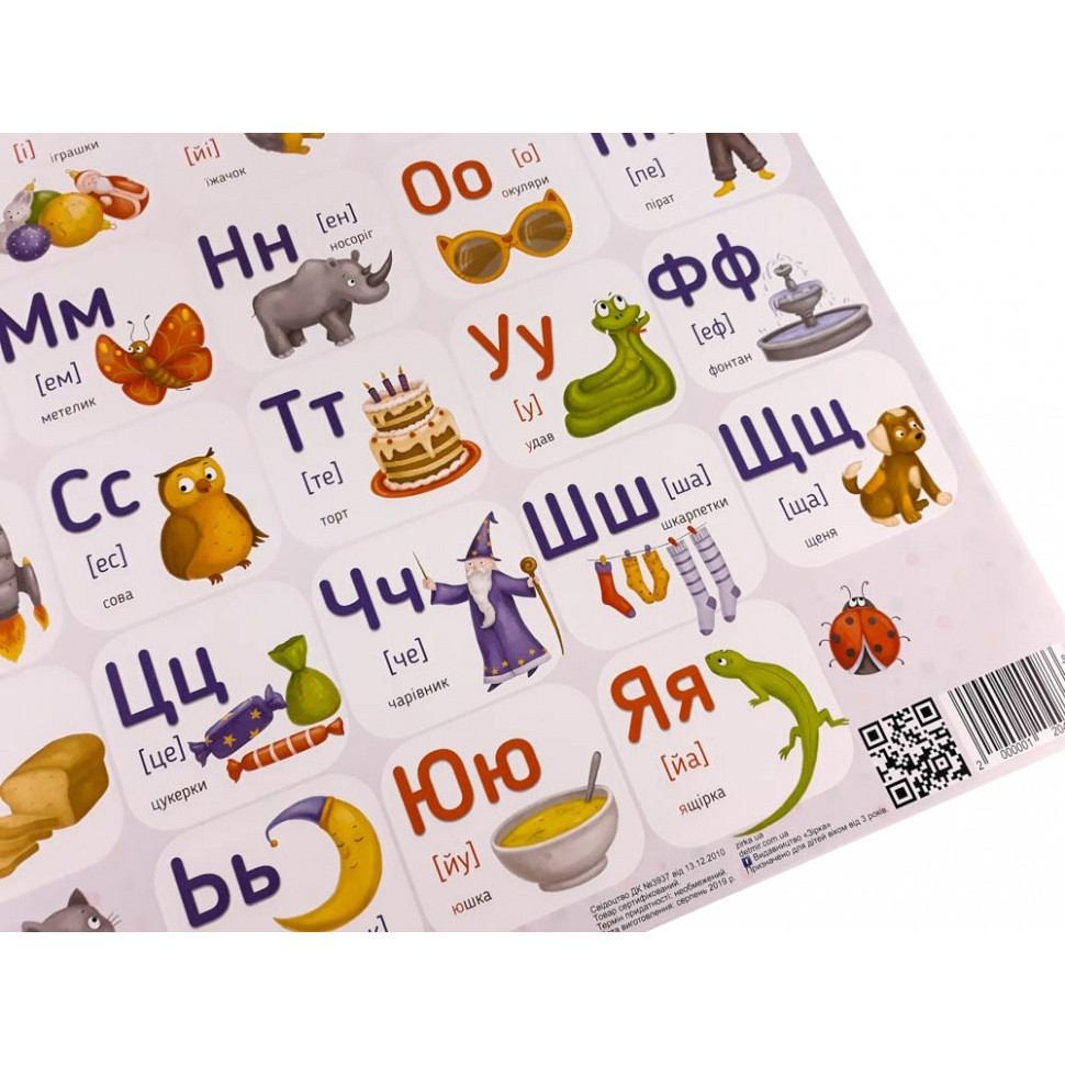 Плакат Українська абетка надруковано на щільному крейдованому папері з глянцевим покриттям.Формат А2 (594 * 420 мм)