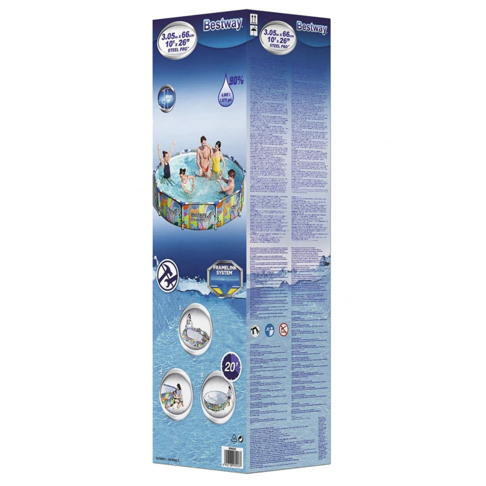 Каркасний басейн Bestway 56985 - має стильний і оригінальний дизайн. Завдяки невеликій глибині в такому басейні зможуть купатися навіть малюки, які не вміють плавати, дана модель має круглу форму, незважаючи на невеликі розміри в такому басейні можна купатися всією сім'єю. Басейн Bestway 56985 відрізняється високою якістю, надійністю і доступною вартістю, одним з головних переваг цієї моделі є простота зборки, басейн складається з міцної чаші і металевого каркаса. Каркасний басейн Bestway 56985 може бути встановлений на будь-якій рівній майданчику, попередньо очищеної від гілок і каменів, покупка такого басейну стане відмінним варіантом для сім'ї з маленькими дітьми.Тип: збірний, каркасний басейнФорма: круглаСистема складання каркаса: полімерні з'єднувачіЧас монтажу: 30-60 хвилин (2-3 людини)Діаметр: 305 смВисота: 66 смФактична висота: Глибина на 8 см нижче - 58 см: захист від переповненняМісткість води, обсяг 90%: 4062 лКількість стійок: 10 прямихТип підключення чаші: на хомутахЗливний клапан: Вбудований зливний клапан полегшує слив. Прикріпити адаптер (додається) до садового шлангу для відведення води в потрібне місцеМатеріал чаші: тришаровий ПВХ: ПВХ + скловолоконна сітка + ПВХМатеріал товщина: стінок - 0.42 мм дна - 0.25 ммМатеріал каркаса: коррозионностойкий, металевий каркас (оцинковані сталеві труби з порошковим покриттям як всередині, так і зовні)Особливості серії: полімерні T-Joints з'єднувачіЧас монтажу: Установка зазвичай займає близько 30 хвилин з 2-3 людьми, виключаючи земляні роботи, заповнення