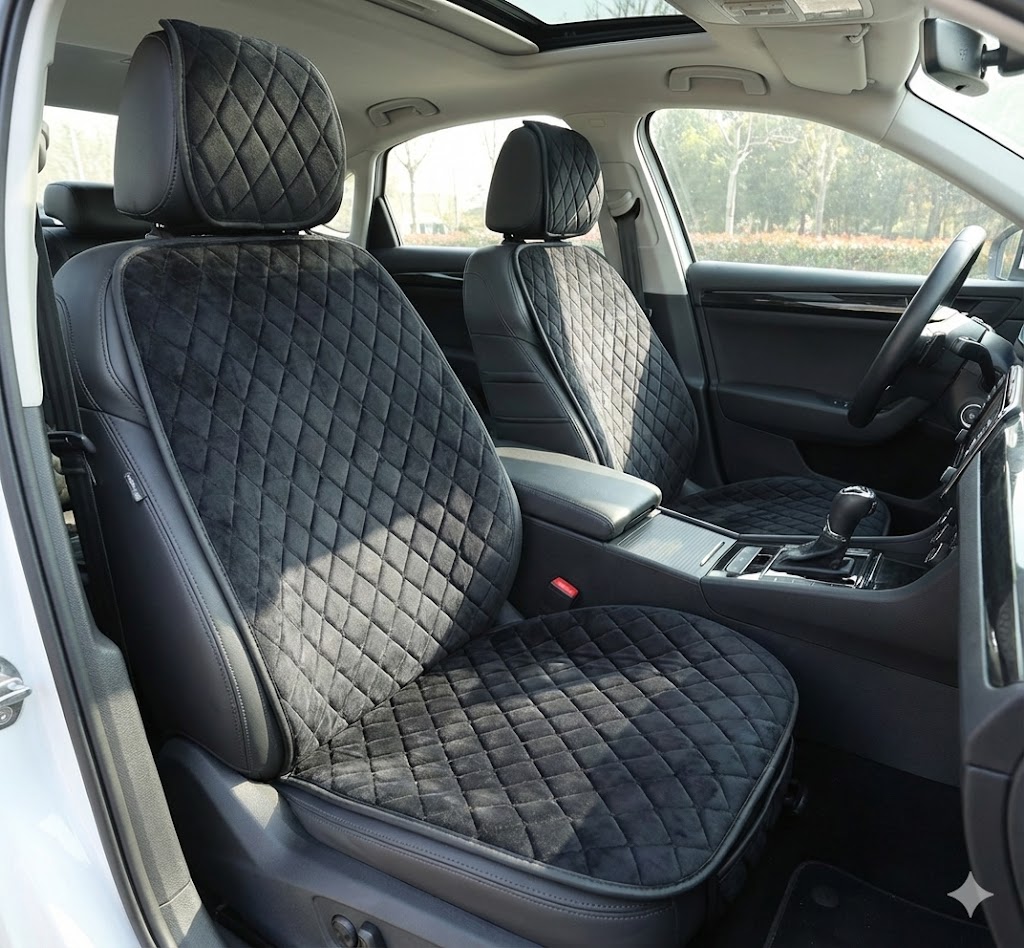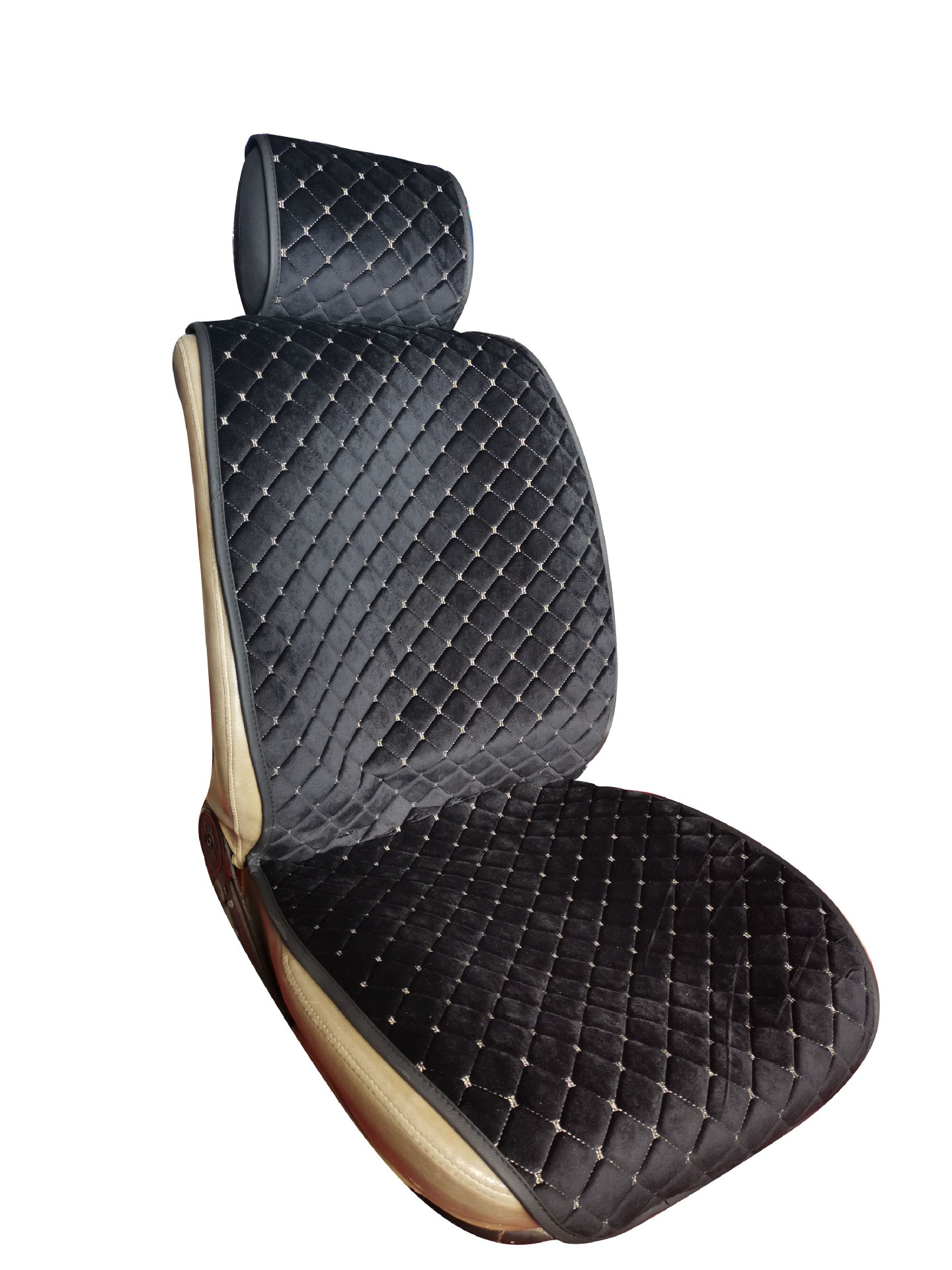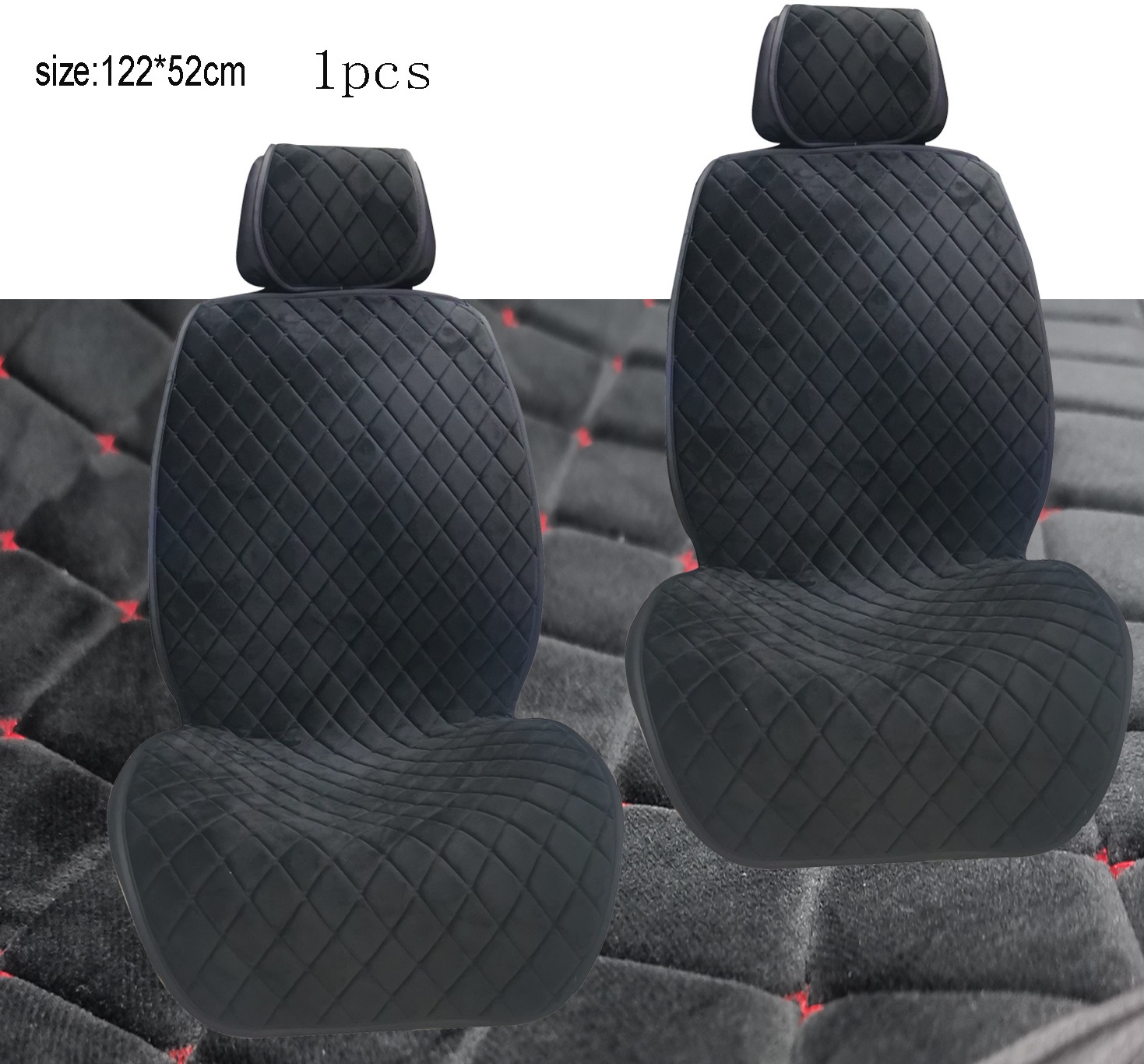 Накидки сидінь "Алькантара" VIP Чорна/Ромб/без бічної підтримки(1 шт) з Підголовником(10mm товщина)