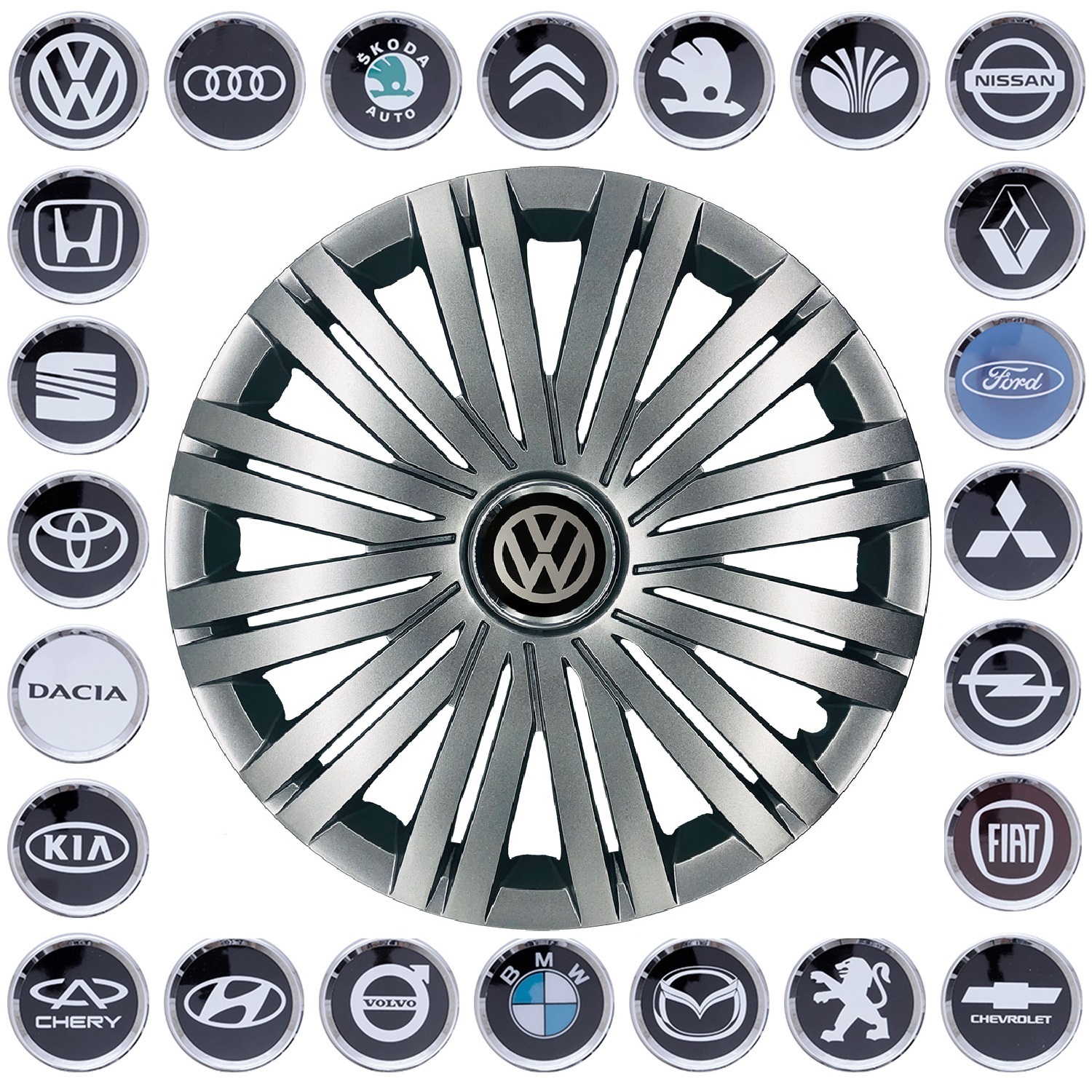 В комплект входит 4 колпака и эмблемы вашего автомобиля.
