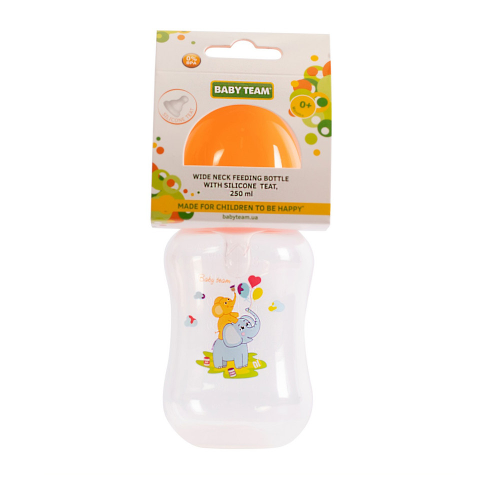 Пляшечка для годування з широким горлом та силіконовою соскою 1002 помаранчевий 250 мл
