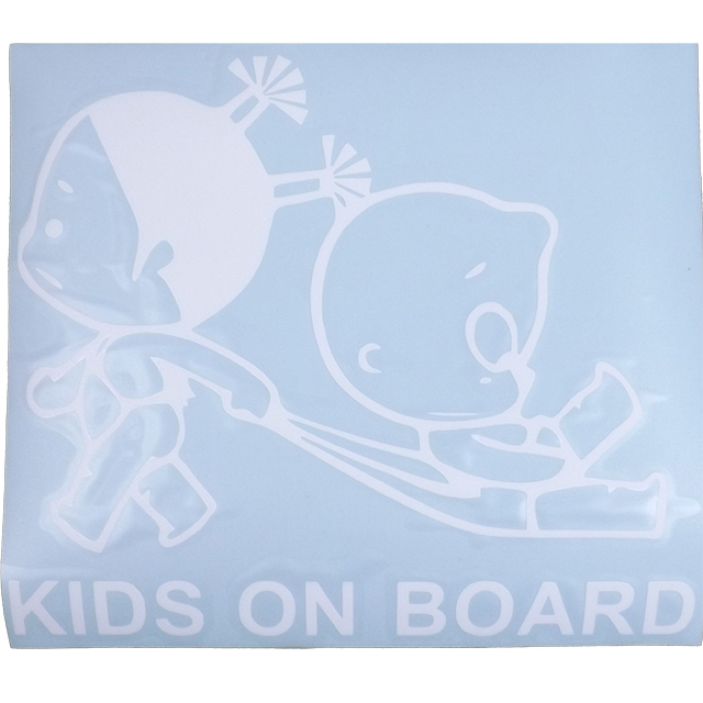 Наліпка Попереджувальна "Дитина в авто" плотерна біла Kids on board (дівчинка з хлопчиком)