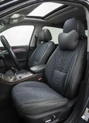 Чохли ''В'' "LUXE MAX" Чорні - Середина Жаккард Сині ромби (Заднє сид-ня розділене+5-Підголов.в)