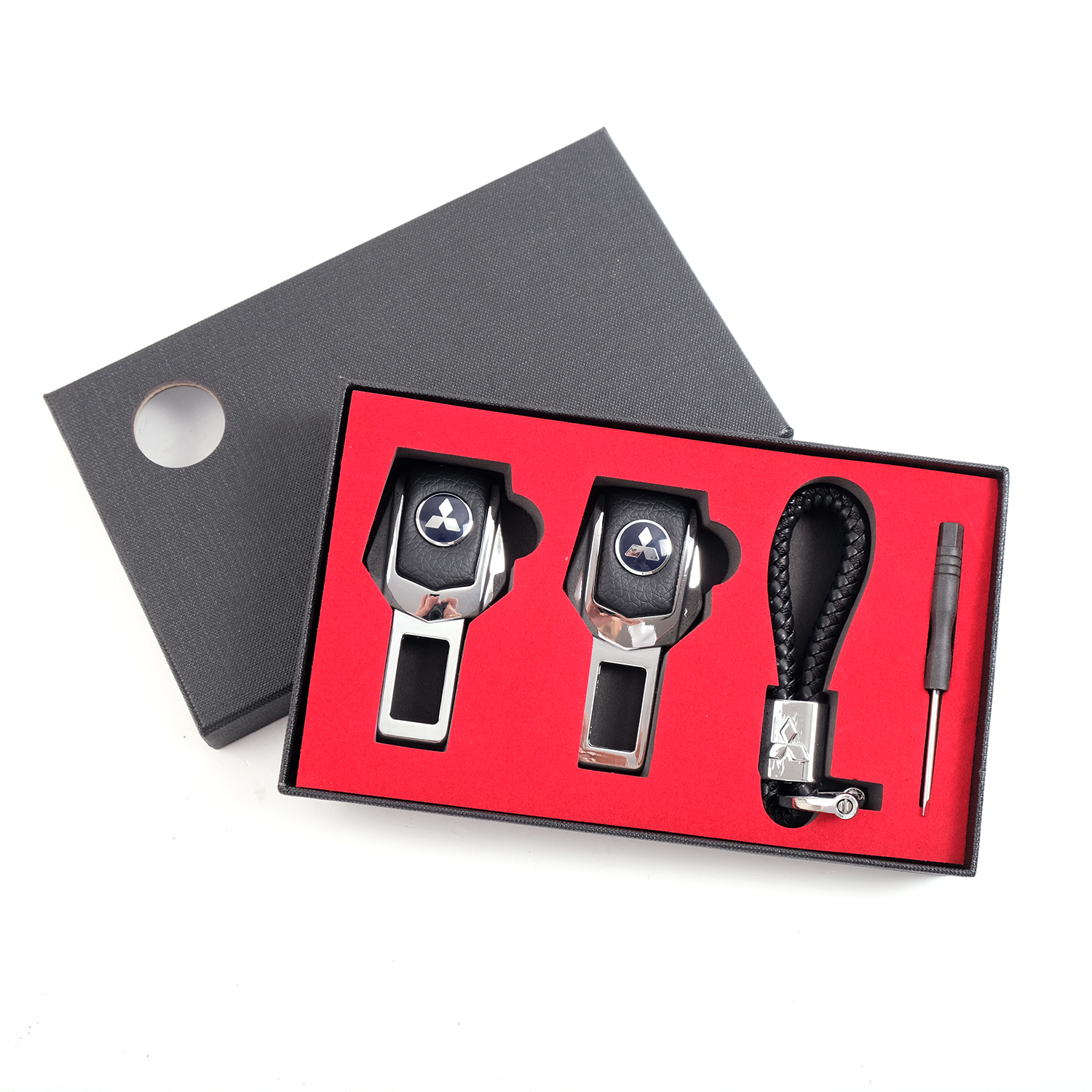 Подарунковий набір MITSUBISHI 2в1 (фіксатор ременів, плетений брелок) №2 хром
