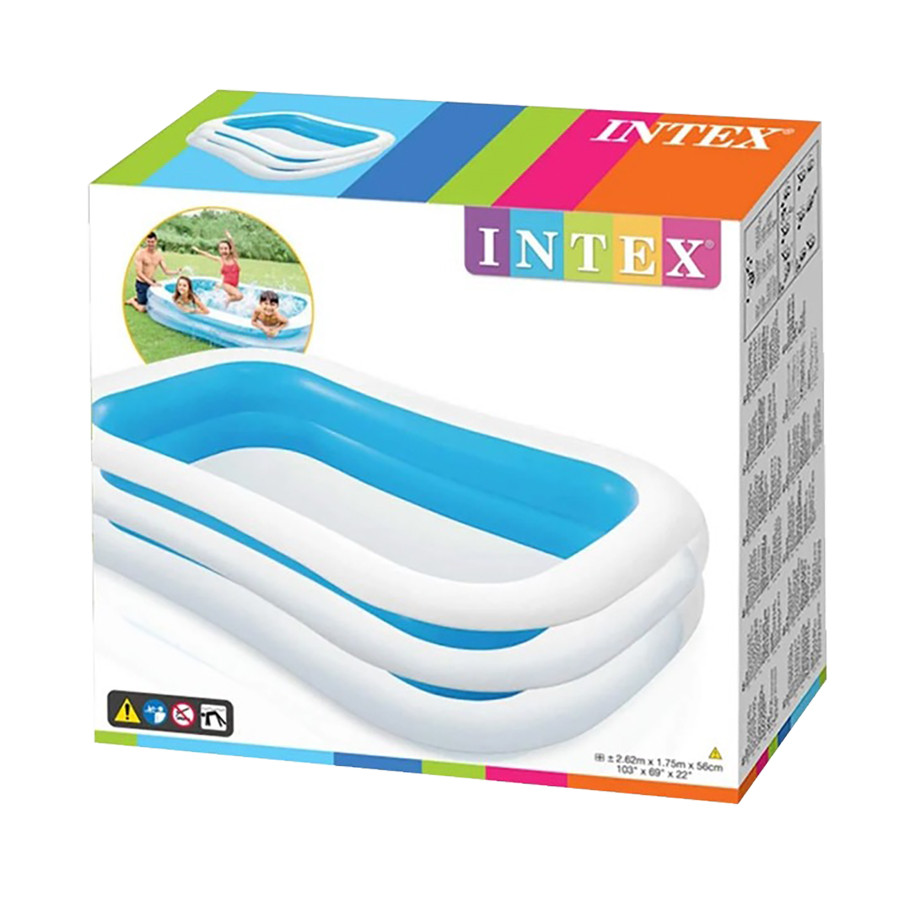Просторий, універсальний басейн Intex 56483 Прямокутний розміром 262х175 см має високі, пружні бортики 56 см з матовою поверхнею і спеціальні зливні клапани. Виріб з високоякісного, ущільненого вінілу товщиною 0,30 мм, який після тривалого перебування на відкритому сонці не виділяє токсичних речовин і не викликає алергію. Конструкція відрізняється надійно проклеєними стратегічними швами і чудовою якістю виготовлення, завдяки чому басейн буде радувати Вас і Ваших малюків не один сезон поспіль. Модель з колекції Swim Center забезпечена ненадувним, міцним дном, двома автономними, повітряними камерами з комбо клапанами. Активні ігри у воді корисні для загального фізичного розвитку, поліпшення координації рухів, зміцнення опорно-рухового і вестибулярного апарату.