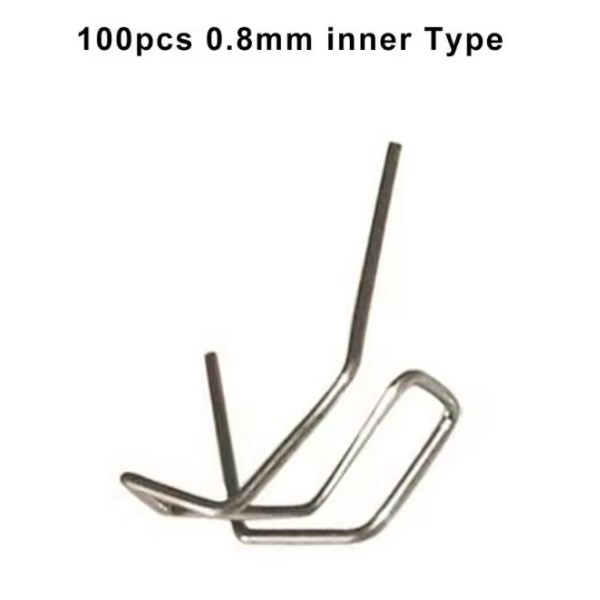 1. Гарячі скоби: Ці гарячі скоби виготовлені з нержавіючої сталі, що забезпечує їй високу твердість, стійкість до окислення та корозії. Мають низьку температуру плавлення, гарну текучість, твердість та міцність, а також гарне ущільнення. Ідеально ремонтують отвори та зашивають довгі тріщини.