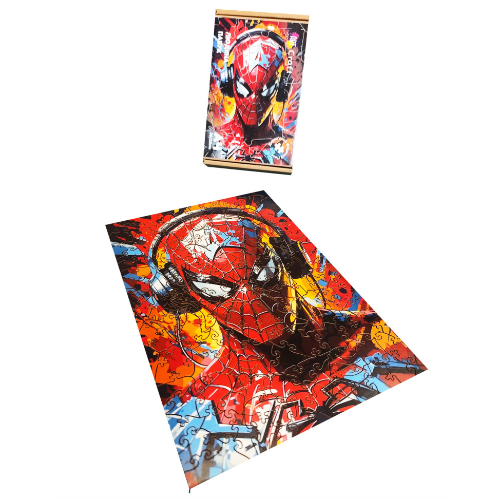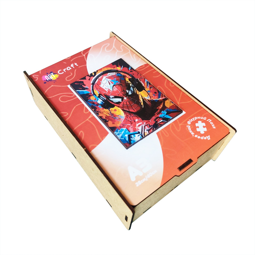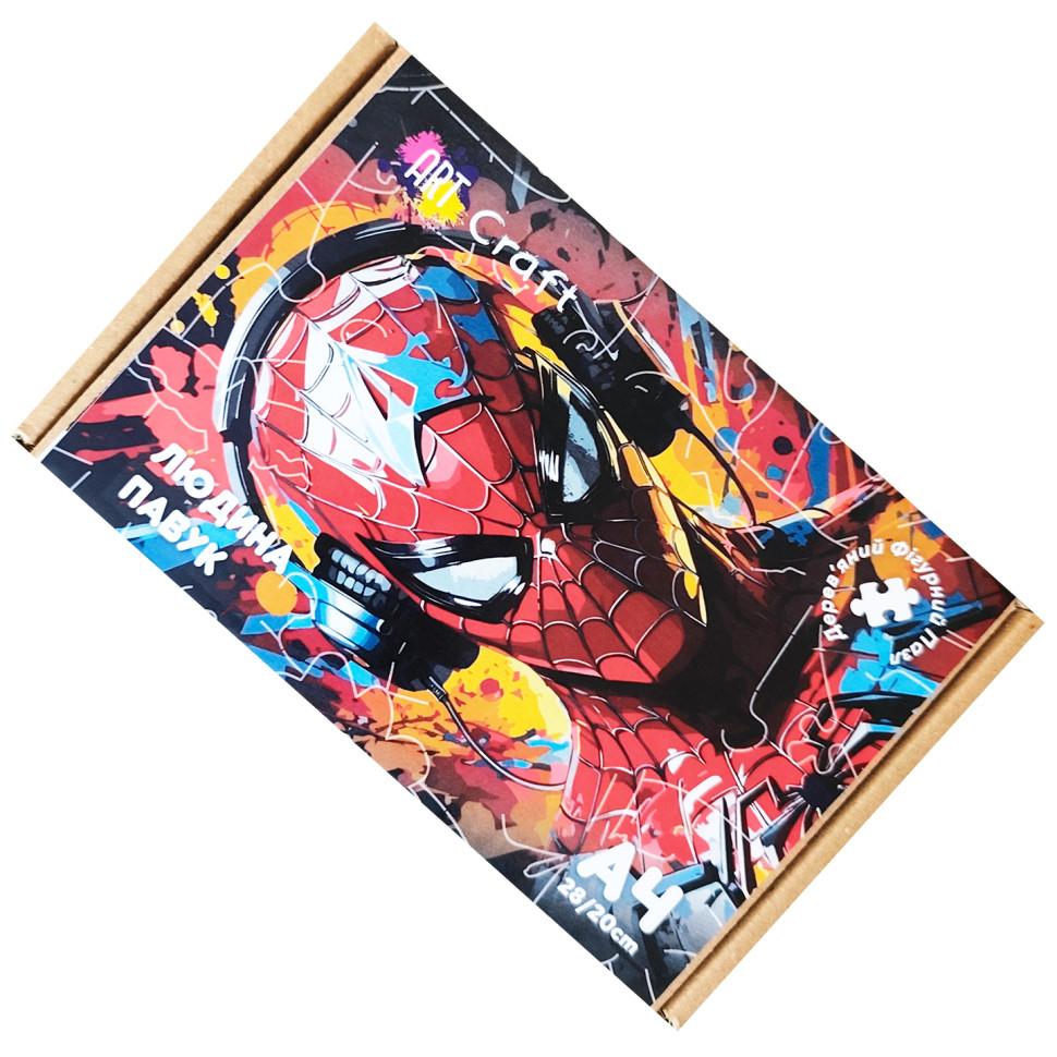 Фігурний пазл з дерева "Людина-павук" PZ003-A3W-AC 180-250 деталей, А3 з мішечком і стрічкою