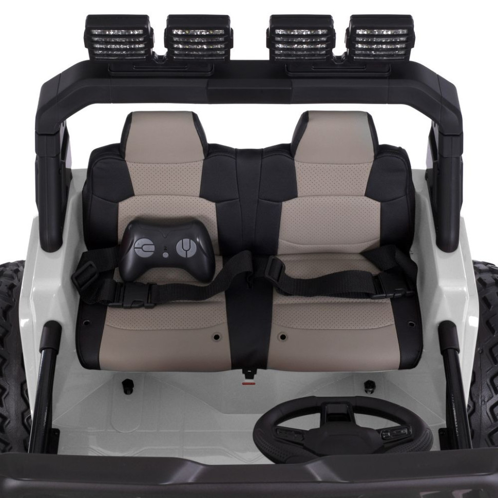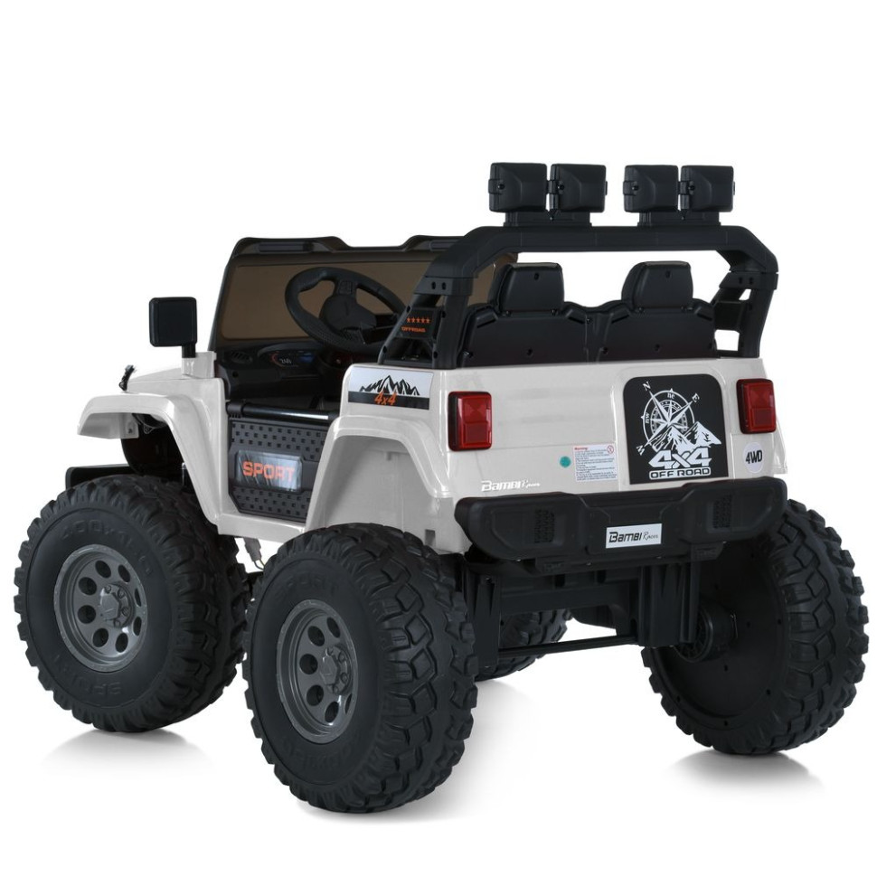 Бренд Bambi RacerТип джипРозміри товару довжина 113-131смширина по дзеркалах/ колесам 87смвисота 92смвага 37,2 кгвідстань від сидіння до педалей 36смДопустиме навантаження За вагою до 60кгЗа віком від 3-х до 8 роківМотор Кількість/V/RPM 4*45W / 12V / RPM12000Батарея Кількість/V/AH 2 по 12V7AhІндикатор батареї +Заряджання V/mA 24V/1000mAЧас на зарядку 8-12годІндикатор заряджання +Старт Старт с кнопкиЗвук під час старту +Плавний старт у звичайному режимі +Швидкість км/год 5-8 км/годКількість швидкостей на панелі/на пульті 2/3Педаль газу +Педаль-гальмо -Світло Фари ПередніПідсвічування +Кнопка вмик/вимик світла +Звук Музика MP3+USB+AUXКарта пам'яті +Сигнал на керміBLUETOOTH +Управління Пульт керування 2,4G(STOP BUTTON)App(додаток) -Рух вперед/назад кнопкаСидіння кількість місць 2Ремені безпеки 2-х точковіМатеріал екошкіраШирина посадкового місця 2 по 25 смКолеса Матеріал EVAРозмір передніх коліс/дисків 39 см/19,5 смРозмір задніх коліс/дисків 39 см/19,5 смПростий монтаж +Корпус Матеріал пластикДах -Амортизатори Передні -Задні +Додаткові функції Двері відчин. -Демо-режим -Бат.ручка -Дод. Коліщатка -Кондиціонер -Килимок -Причіп -Додаткові елементи розкладаєтьсяКОРОБКА Брутто/Розмір 43,6кг/118-72-49 смКількість шарів 7Наявність кольорового постера -Колір картону коричневий