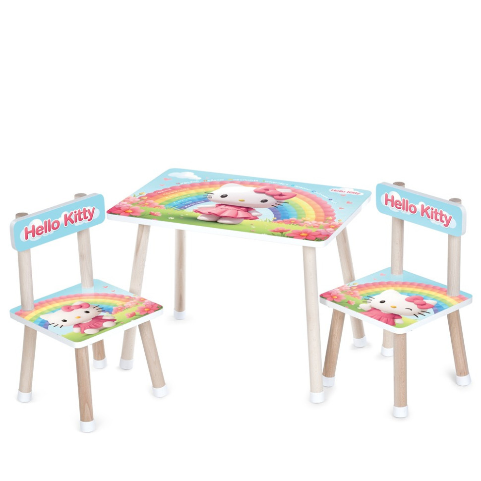 Дитячий дерев'яний столик і стільчики M 501 - має міцні ніжки із силіконовим захистом від ковзання, дана модель стане відмінним доповненням дитячої кімнати, на такому столику дитина зможе грати, займатися творчістю, робити уроки та їсти.Дитячий столик комплектується якісним та надійним стільчиком зі спинкою, виріб має гладку поверхню, яка легко очищається від забруднень та залишків їжі, завдяки своїй компактності такий столик не займатиме багато місця, але стане відмінним робочим місцем для дитини.Характеристики:Матеріал: натуральне дерево + МДФ, силіконовий захист на ніжкиКолір: приємна гама, що створює теплу та доброзичливу атмосферу.Дизайн: барвистий принтБезпека: стійкі ніжки, закруглені кути