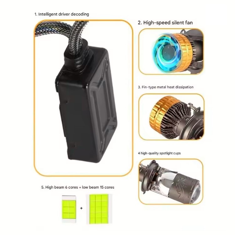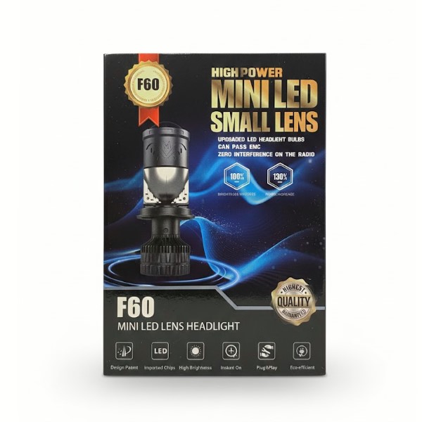 F60 H4 світлодіодний проектор з лінзою для автомобільних фар з турбовентилятором 6000k 160W