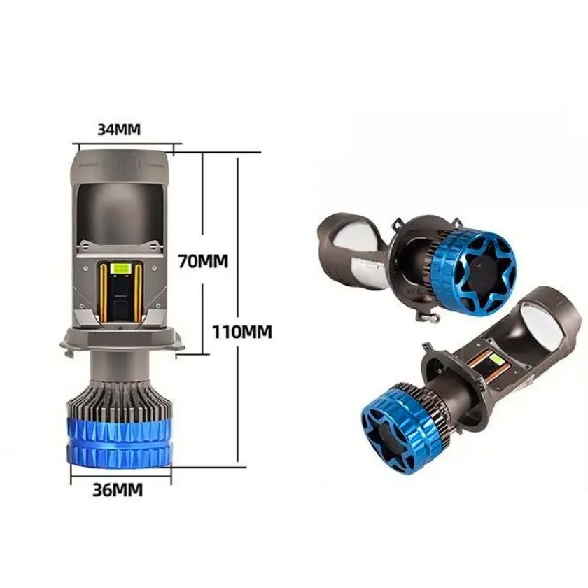 - Міні-проекторні лампи H4 Bi-LED з діаметром лінзи 35 мм