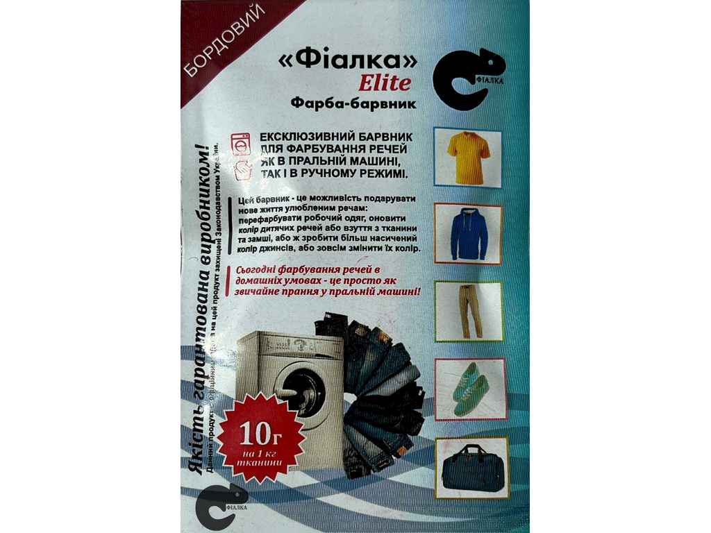 Універсальний, високої якості барвник для одягу ТМ «Фіалка» Elite, який можна використовувати в пральній машині, що значно полегшує процес фарбування!