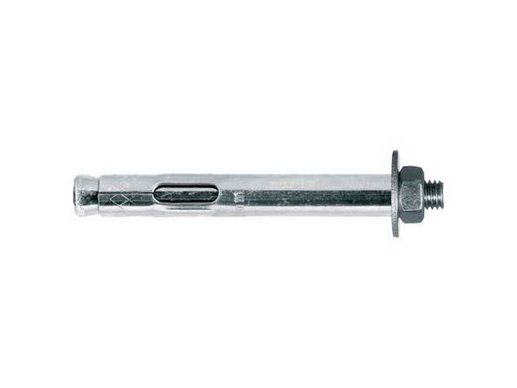 Анкерний болт з гайкою - кріпильний елемент, призначений для наскрізного монтажу конструкцій і устаткування до підстав з повнотілих матеріалів (повнотіла цегла, бетон, залізобетон, природний камінь, граніт). Анкер болт з гайкою проводиться з вуглецевої сталі, після чого проходить обробку білим або жовтим цинком для антикорозійної стійкості. Анкер з гайкою складається з шпильки, розпірного елемента і гайки з рифленою прес-шайбою