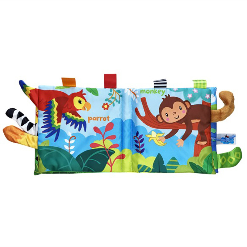 Розвиваюча книжка «Джунглі»» заволодіє увагою дитини. Її елементи викличуть інтерес та стимулюватимуть концентрацію уваги. Книжка допомагає вивчати тварин, кольори та текстури. Допомагає розвивати різні органи чуття дитини з перших днів життя.