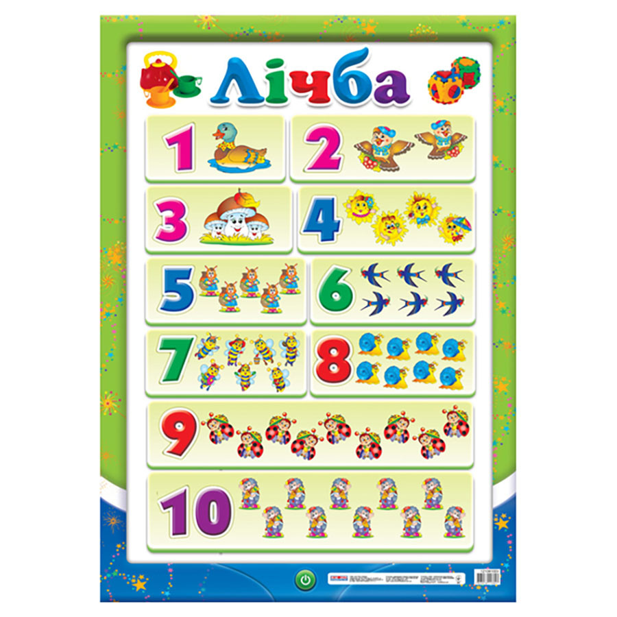 Навчальний плакат Лічба до 10 12104100 з кольоровими картинками