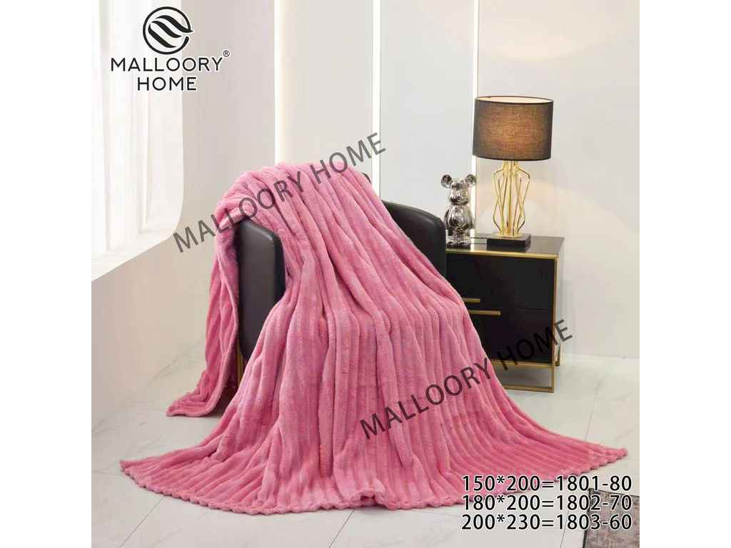 Плед 180*200 мікрофібра шарпей арт.1802 рожевий ТМMALLORY HOME