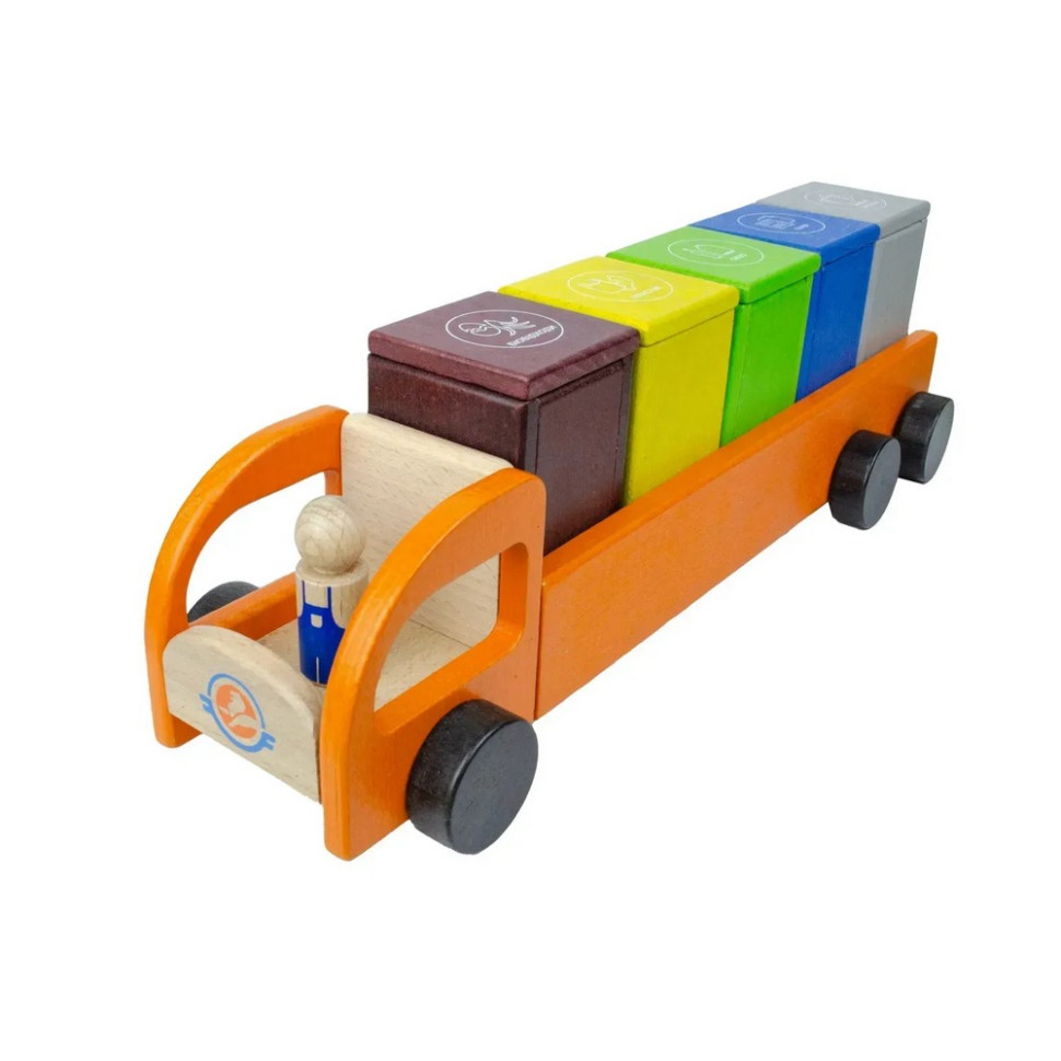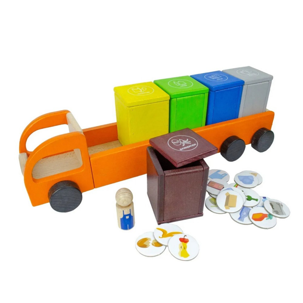 ? Навчаємо екозвичкам через гру!«Сортуємо відходи» — це унікальна дерев'яна екоіграшка, створена для дітей від 3 років, яка допоможе малюкам у цікавій формі навчитися сортувати сміття, формуючи екологічну свідомість і відповідальність.Що входить до набору?? Дерев'яний сміттєвоз – виготовлений із натурального бука та пофарбований безпечними фарбами.♻️ Кольорові контейнери для різних видів відходів:ЗмішаніБіовідходиПластикСклоПапір? 20 фішок із зображенням відходів для сортування.? Функціональний водій, який може виходити з кабіни, вивантажувати баки та перевозити сміття.? Баки, що відкриваються, для зручного сортування.Як грати?1️⃣ Дитина обирає фішку з відходами.2️⃣ Визначає, до якого контейнера вона належить.3️⃣ Відкриває відповідний бак і кладе туди фішку.4️⃣ За допомогою водія сміттєвоз збирає баки та перевозить їх.Чому ця іграшка корисна?✅ Розвиває моторику та логічне мислення.✅ Формує відповідальне ставлення до природи.✅ Навчає через гру – найефективніший спосіб запам’ятати важливу інформацію!«Сортуємо відходи» – це чудова можливість весело провести час і закласти основи екологічної грамотності змалечку!