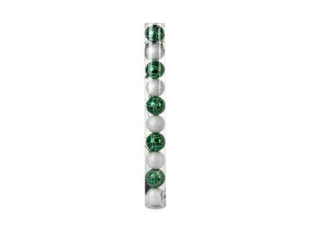 Набір ялинкових куль 6см зелено-білий 10шт/наб M47928 ТМSTENSON