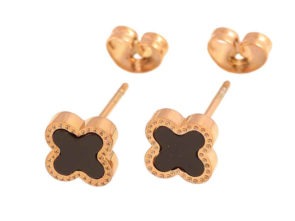 Сережки пусети Нержавіюча сталь Конюшина з чорною вставкою 7х7мм (298078) ТМXUPING
