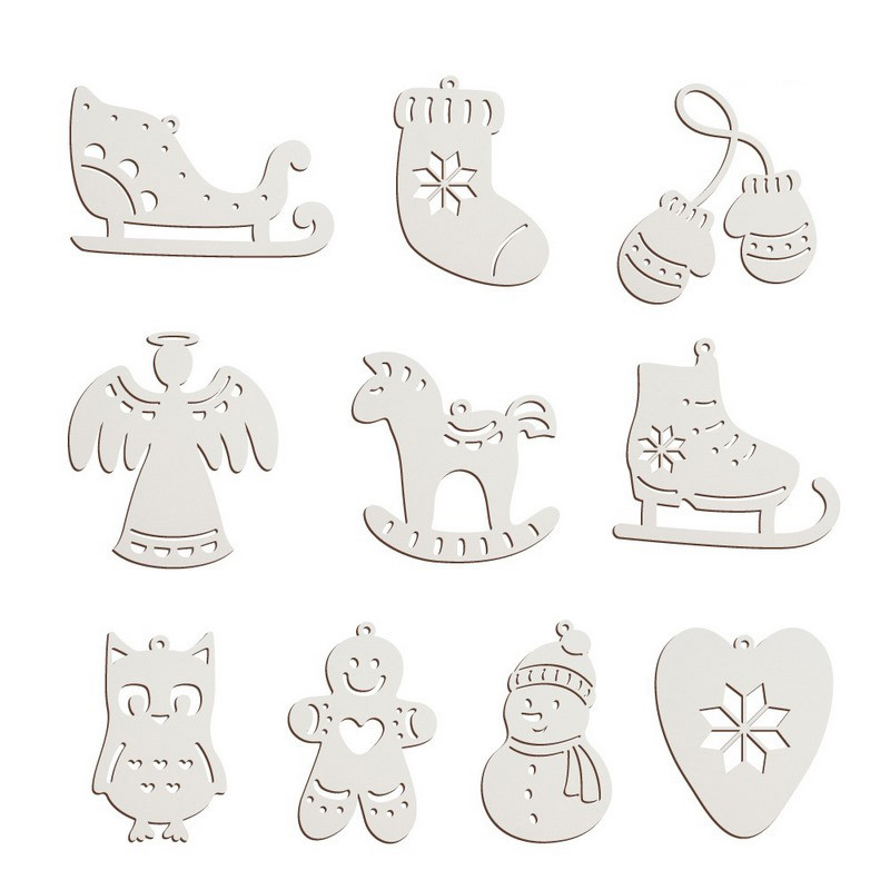 Набір ялинкових прикрас «Зимові атрибути», 10штПрикрасьте своє свято за допомогою ялинкових прикрас в модному сьогодні етно стилі! Виготовлені з 3-мм HDF (щільного, деревоподібного матеріалу), елементи в наборі представлені на вибір:у традиційному матовому червоному кольорі (2 сторони),білому ламінованому (2 сторони)базової версії для подальшого розфарбовування та розпису.Цими забавними фігурками Ви зможете прикрасити ялинку відразу, або додатково оформити їх на свій смак. Даний набір дарує широкі можливості для творчості і стане чудовим полотном для створення красивих зимових декорацій. Ви можете розфарбувати заготовки художніми матеріалами Fabrika Decoru. Використовуйте матові акрилові фарби або з ефектами, такими як металік, хамелеон, рустик або шеббі, щоб створити яскравий, оригінальний образ. Крім фарб, текстурних паст та інших мікс-медіа продуктів, для оформлення можна також використовувати штучні гілочки, ягідки, блискітки, глітер, штучний сніг. Для натхнення або наочного посібника, Ви можете звернутися до уроків з нашого блогу або відео майстер-класів, розміщених на YouTube каналі Фабрики Декору.Трохи часу і натхнення - і Ви побачите, як ялинка оживає, набуваючи казкові акценти і особливий шарм. Набір пропонується в подарунковій картонній коробочці з прозорим віконцем і може бути креативним подарунком до Різдва або Нового Року.