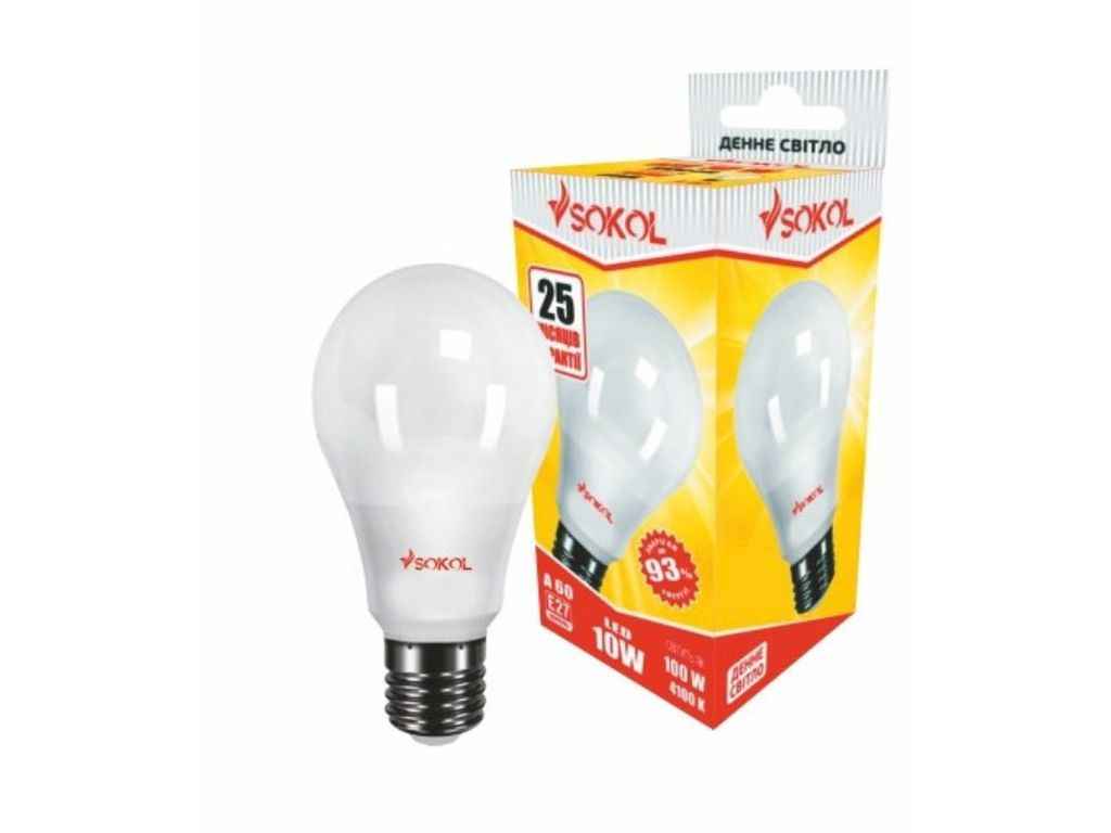 Світлодіодна LED лампа A60 7W 220В E27 4100К Sokol із приємним нейтральним денним світлом. Завдяки потужності 18 Вт однієї такої лампи достатньо для освітлення кімнати площею до 15 м2. Декілька таких ламп можуть на достатньому рівні висвітлити вітальню. Особливістю ламп Сокіл є і великий ресурс роботи до 35 000 годин. Має стандартний цоколь Е27.