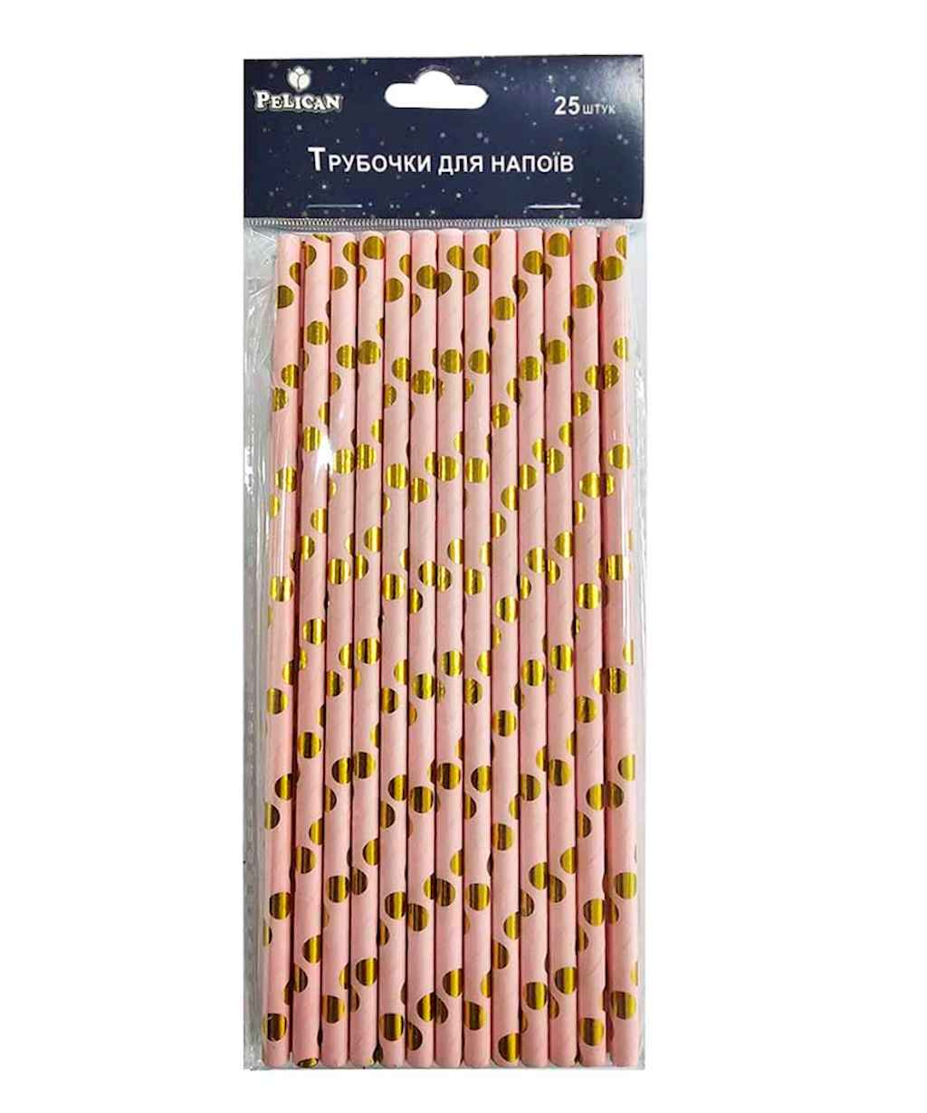 Трубочки Рожеві із золотом 25шт/уп для напоїв #24 ТМPELICAN