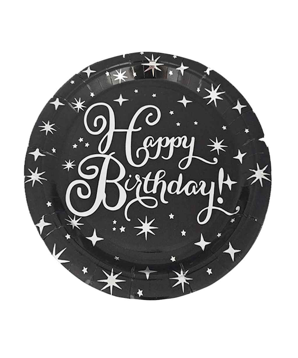 Тарілки Happy Birthday 23см чорні зі сріблом 10шт/уп паперові #21 ТМPELICAN