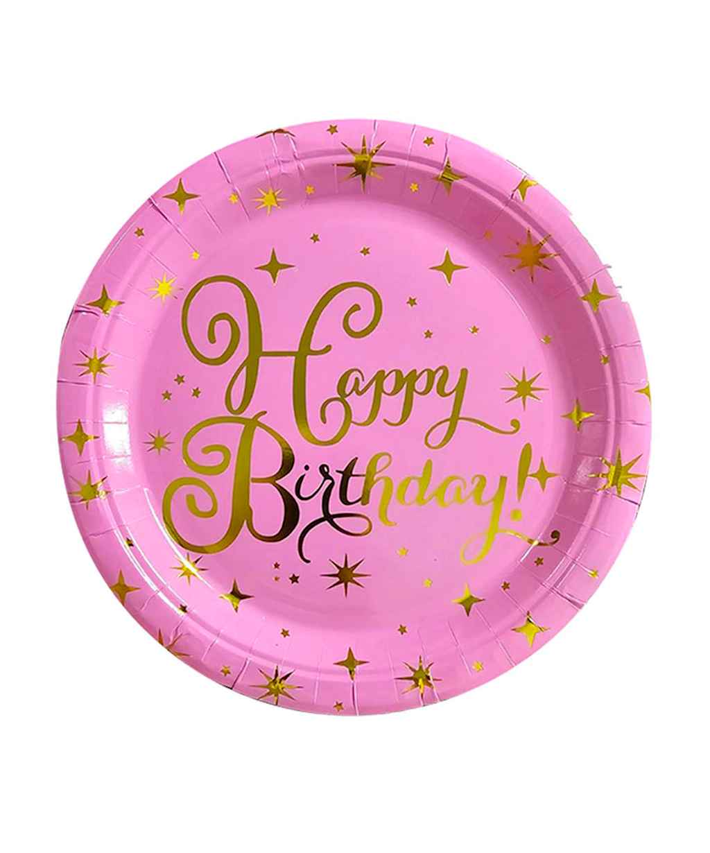 Тарілки Happy Birthday 23см рожеві із золотом 10шт/уп паперові #24 ТМPELICAN