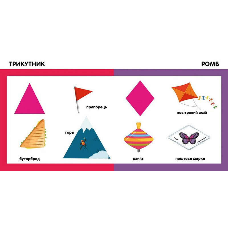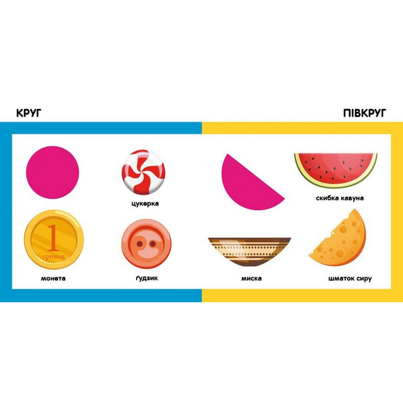 Розумна книжка для розвитку малюка від одного року. Тут є яскраві картинки, прості образи, цупкі сторінки. Малюк може дивитися на малюнки та запам’ятовувати слова.