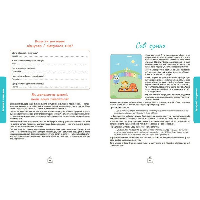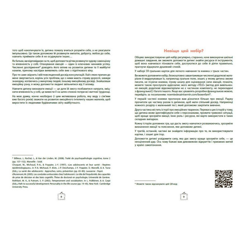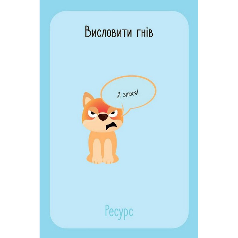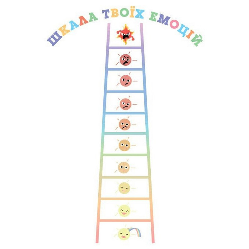 Дотепний і практичний спосіб опанувати бурхливі емоції маляти за допомогою коротких яскравих історій та ігор з картками. Зебрик, коала, свинка, півник та інші персонажі допоможуть дитині осягнути свої емоції, навчитися ділитися ними, а отже розрядити їх до того, як вони вибухнуть і захлеснуть дитину. Ноемі де Сен-Сернен, популярна авторка й фахівець в галузі особистісного розвитку, пропонує комплект з 59 карток з тваринками й карти зі шкалою, до яких додається книжка з детальними інструкціями, як користуватися комплектом.
