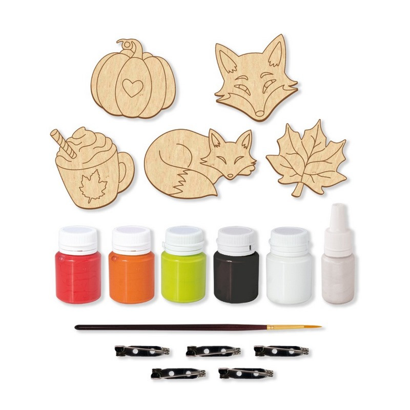 Огляд: створюємо значки на осінню тематикуДодайте своєму образу теплі осінні акценти з набором для творчості «Яскрава осінь» від Fabrika Decoru! Цей комплект «все-в-одному» дозволить вам легко і з задоволенням створити п'ять унікальних дерев'яних значків-пінів. Вам не потрібно бути художником — просто дайте волю фантазії і розфарбуйте милі фігурки так, як підказує уява. Готові значки стануть прекрасною прикрасою для вашого одягу, сумки або душевним подарунком, зробленим з любов'ю.Що всередині набору?Ми подбали про те, щоб у вас під рукою було все необхідне для творчості:5 дерев'яних заготовок: фігурки у вигляді лисичок, гарбуза, кленового листа і чашки з пряним напоєм.Набір акрилових фарб: 5 яскравих осінніх кольорів, які прекрасно лягають на дерево.Зручний пензлик для промальовування навіть дрібних деталей.Захисний акриловий лак, щоб ваші значки були яскравими і довговічними.5 основ-шпильок для кріплення готових значків.Як це працює: проста інструкціяСтворити свій значок дуже просто:Виберіть дерев'яну заготовку і придумайте для неї дизайн.Розфарбуйте її акриловими фарбами з набору.Дайте фарбі повністю висохнути.Покрийте значок шаром захисного лаку для додання блиску і міцності.Після висихання лаку приклейте з зворотного боку основу-шпильку. Ваш унікальний аксесуар готовий!А якщо вам знадобиться допомога або трохи натхнення, просто відскануйте QR-код на упаковці — він приведе вас до докладного відео-уроку від наших дизайнерів.Ідеї для використанняГотові значки стануть яскравим акцентом на:Пальто, джинсовій куртці або светрі.Міському рюкзаку, шоппері або тканинній сумці.Шарфі або шапці.А ще це прекрасний, зроблений своїми руками, подарунок для друга або близької людини!