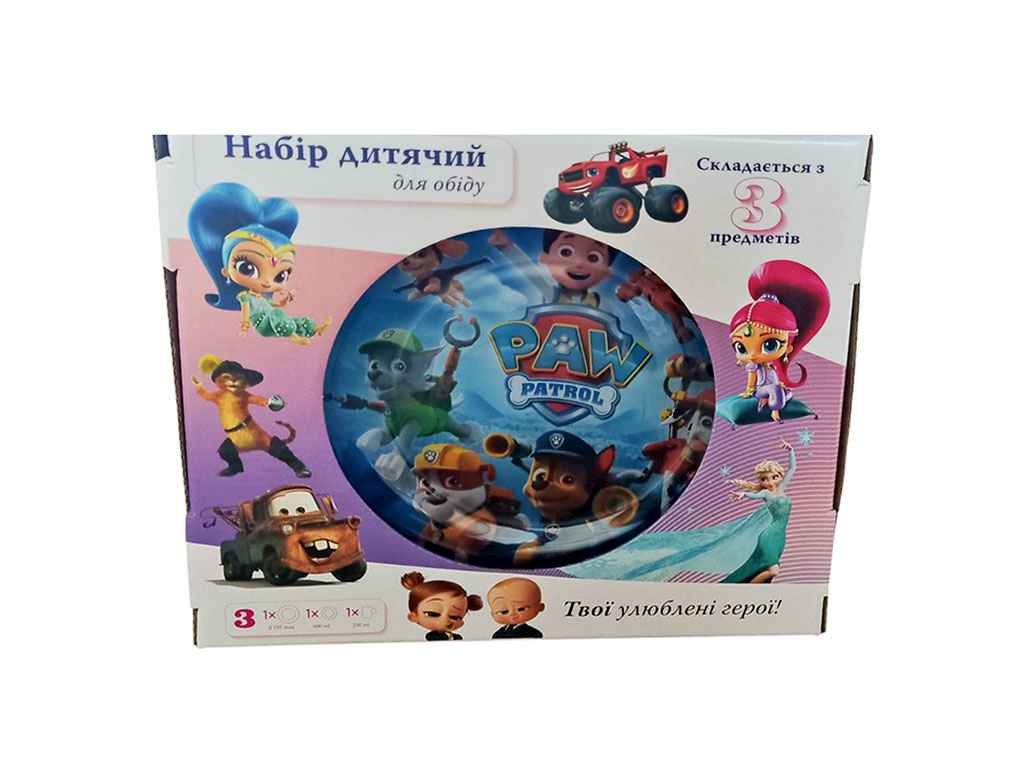 Набір дитячий (бульйонниця 500мл,чашка 250мл, тарілка 19см) Щенячий патруль в под. коробці ТМ FARGLASS