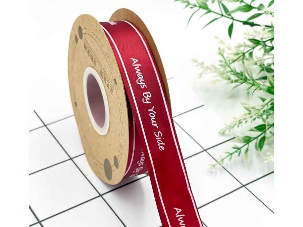 Стрічка атласна 2,5см * 30м бордовий з написом Always by your side (АБ-786) ТМКИТАЙ