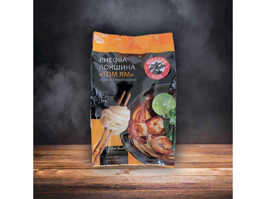 Це продукт, який представляє собою заздалегідь приготовлену і висушену рисову локшину, яку можна швидко приготувати, заливши окропом та зачекати декілька хвилин. Суха суміш «ТОМ ЯМ», насичена смаками та ароматами тайської кухні на вершковій основі, додасть пікантного та насиченого смаку вашій страві. Це бездоганне поєднання вершкової основи, з ароматом креветки, свіжих томатів, з лимонними нотками свіжості, та рисової локшини, не залишить вас байдужими та голодними. Рисова локшина «ТОМ ЯМ» стане вам в нагоді, як ситий перекус так і основна страва для обіду чи вечері.